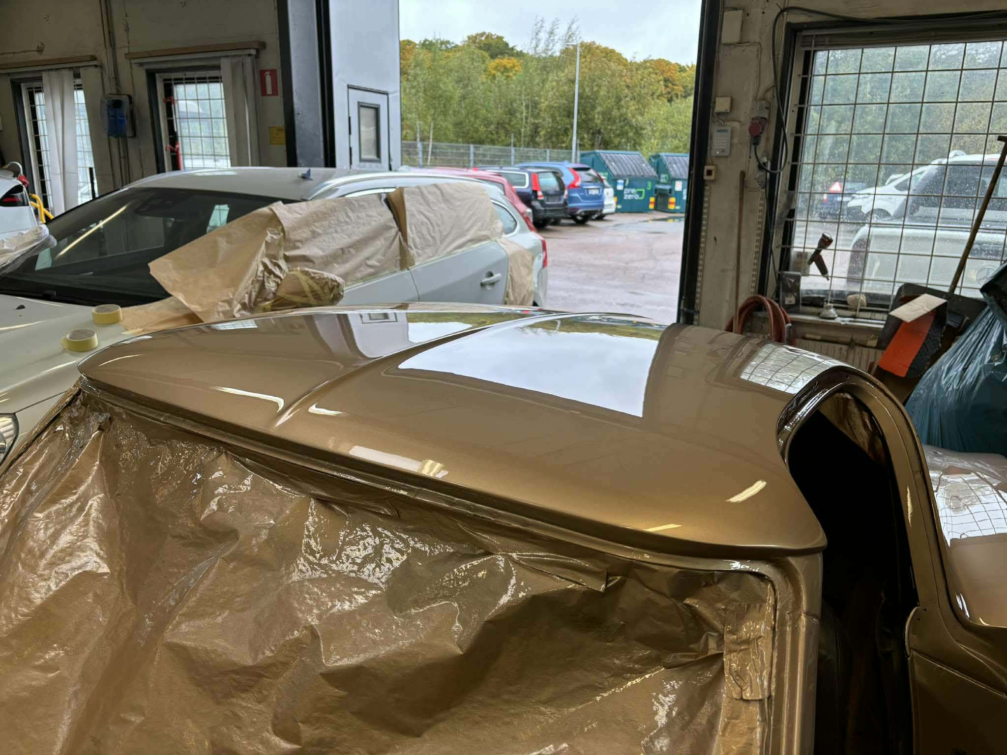Därefter applicerar vi grundfärg, följt av själva lacken i flera lager. Slutligen läggs en skyddande klarlack som ger bilen sin glans och skyddar mot yttre påverkan.